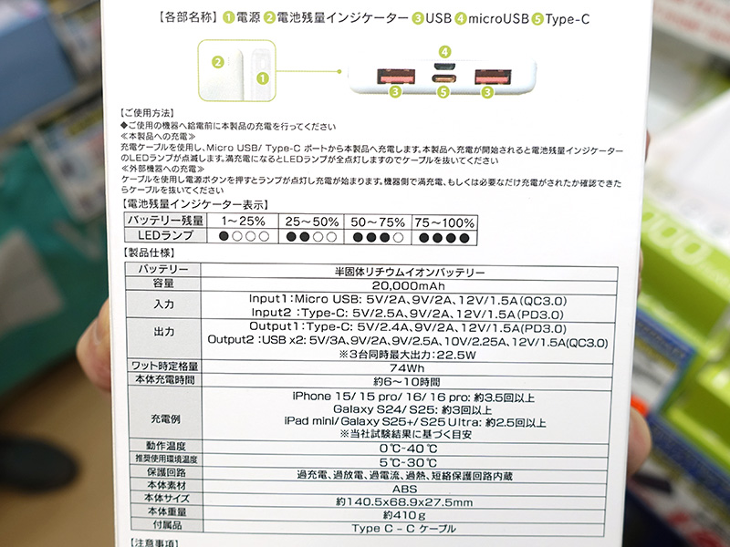 Lazosの2万mAh半固体モバイルバッテリーが店頭入荷、価格は3,380円