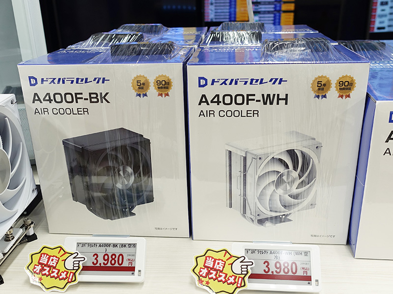 ドスパラセレクトのサイドフロー型CPUクーラー「A400F」「A620F」が発売、カラーはブラックとホワイトの2色(5/11)
