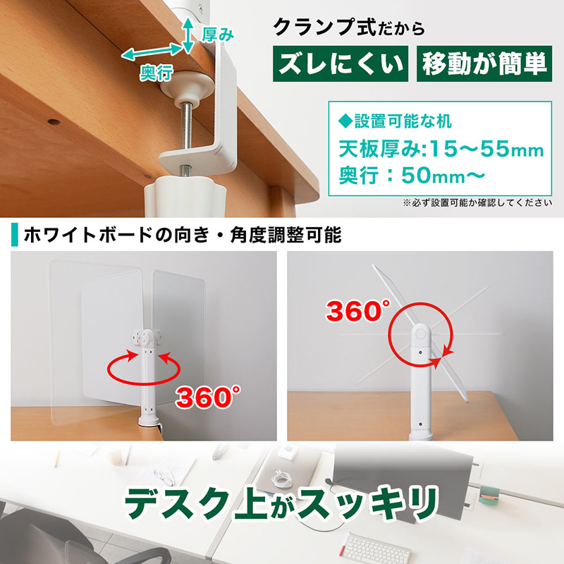 デスクスペースを広く使える「360度自由自在クランプ式ホワイトボード」がサンコーから