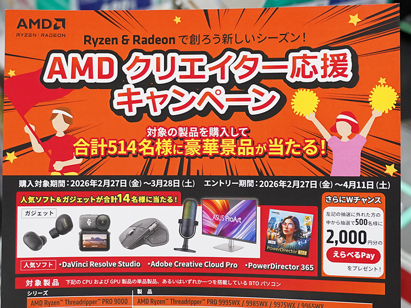 【Amazon.co.jp限定】 AMD Ryzen 9 9950X3D, without CoolerAmazonで購入【Amazon.co.jp限定】 AMD CPU Ryzen 7 9800X3D, without CoolerAmazonで購入【Amazon.co.jp限定】ASRock 3年保証 グラフィックボードSteel legend RX 9070 XT 16GAmazonで購入ASUS PRIME-RX9070XT-O16GAmazonで購入SAPPHIRE PULSE Radeon RX 9070 GAMING 16GBAmazonで購入Power Color AMD Radeon RX9070 RX9070 16G-L/OCAmazonで購入