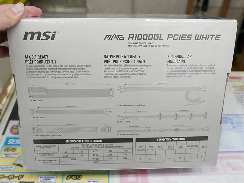 • PCIe 5.0/ATX 3.0対応の80PLUS GOLD電源がMSIから、刺さり具合がすぐわかる12VHPWRコネクタ採用