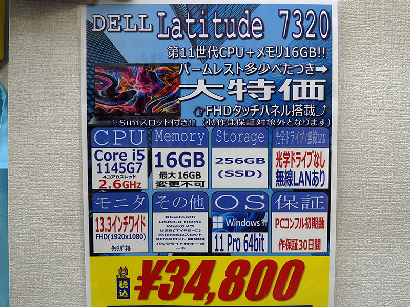Core i5-1145G7や16GBメモリ搭載の「Latitude 7320」が34,800円!中古PCセール