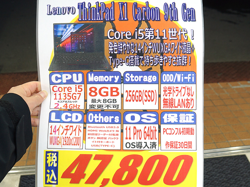 第11世代Core搭載の「ThinkPad X1 Carbon 9th Gen」が47,800円!中古PCセール