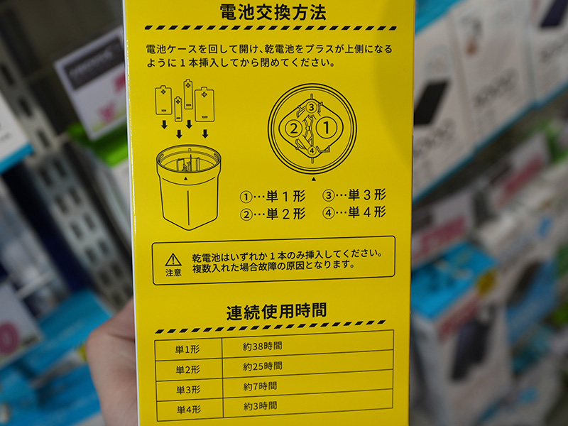 単1形~単4形アルカリ乾電池1本で動作するLED懐中電灯が1,280円