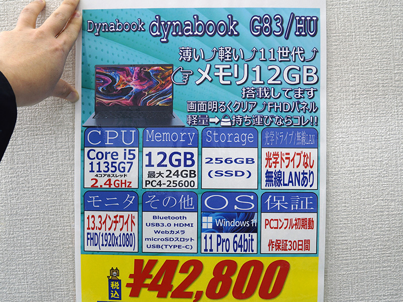 13.3インチ「dynabook G83/HU」が42,800円!Core i5-1135G7や12GBメモリ搭載モデルの中古セール