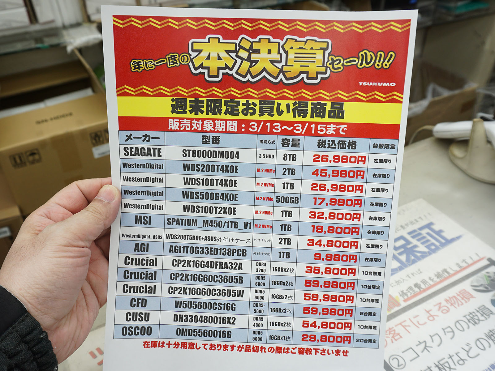 アキバお買い得価格情報(3月12日~13日調査)
