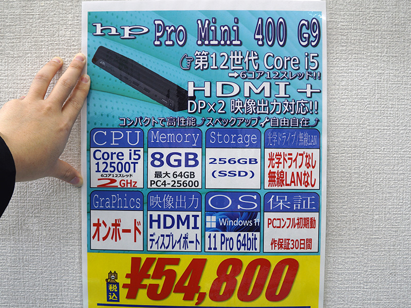 Core i5-12500TやWindows 11 Pro搭載の「Pro Mini 400 G9」が54,800円!HP製ミニPCの中古セール