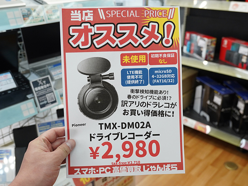 1080p録画対応のパイオニア製ドライブレコーダーが2,980円!訳あり未使用品セール