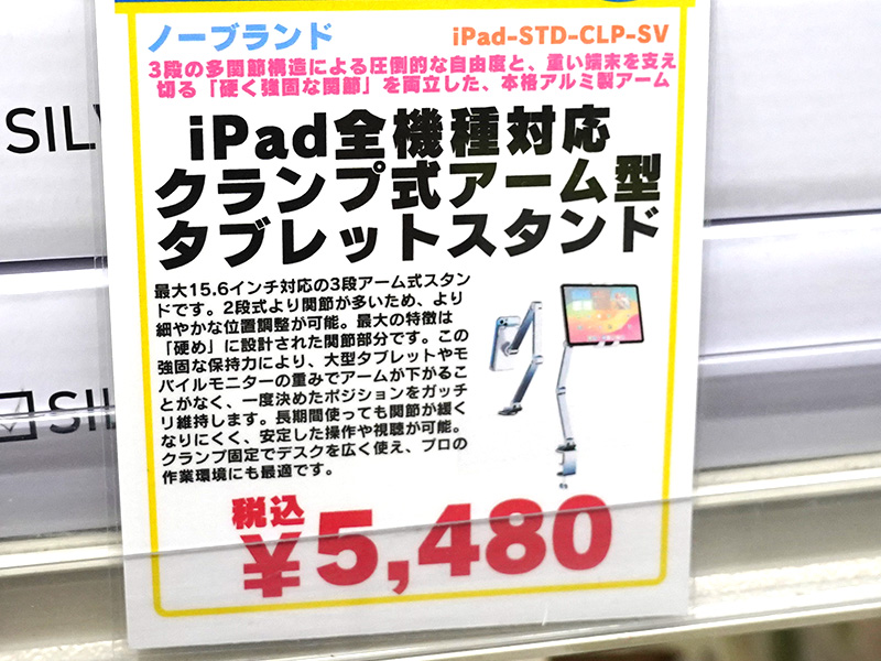 アルミ合金製のアーム型タブレットスタンドが入荷、iPadやスマホなどに対応