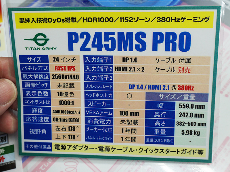 4K/170Hz対応の27型ゲーミングモニター「P275MV MAX」がTitan Armyから、フルHD/340Hzもサポート