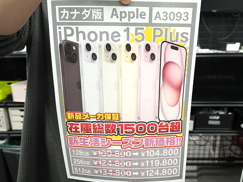 「iPhone 15 Plus」が104,800円から!カナダ版の新品セール