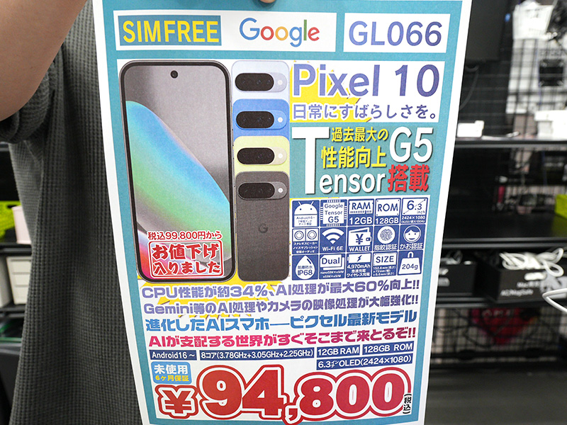 Googleの6.3インチスマホ「Pixel 10」が94,800円!未使用品セール