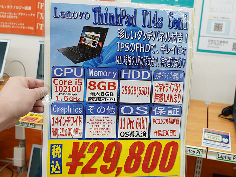 「ThinkPad T14s Gen1」の中古品が29,800円、第10世代Core i5やタッチ操作対応モデルがセール
