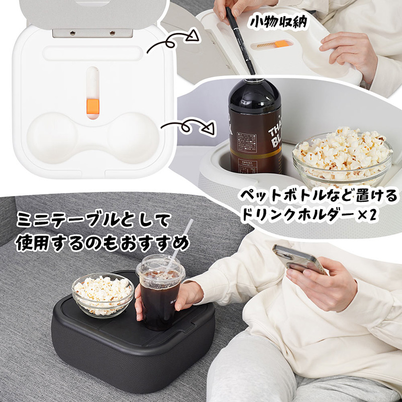 スマホ/カップホルダー機能付きの膝上クッション「怠惰なあなたの膝上テーブルクッション」がサンコーから