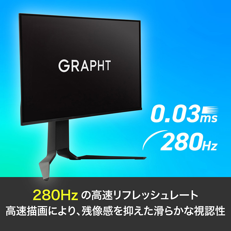 280Hz駆動QD-OLEDパネル採用の27インチWQHDゲーミングモニター「GR2728OEL-BK」がGRAPHTから