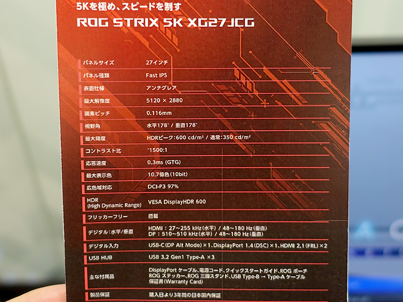 ASUSの27インチ5Kゲーミングモニター「ROG Strix 5K XG27JCG」が発売、330Hz/WQHDモードも搭載