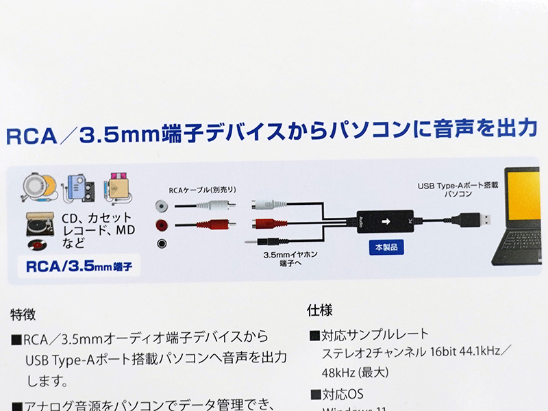 レコードやカセットのアナログ音源をデジタル化できるケーブル「CAP-RCA35USB」がアイネックスから(3/5)