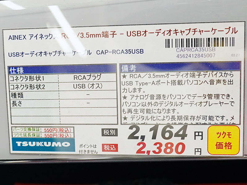 1,680円のUSBキャプチャなどアイネックス製品が3種類入荷