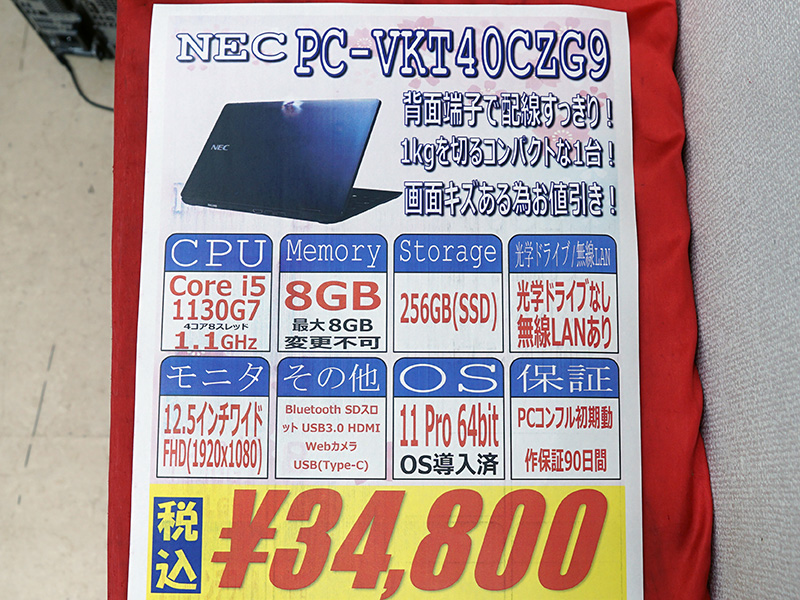 NECの12.5インチ軽量ノートPCが34,800円!Core i5-1130G7搭載の中古PCセール