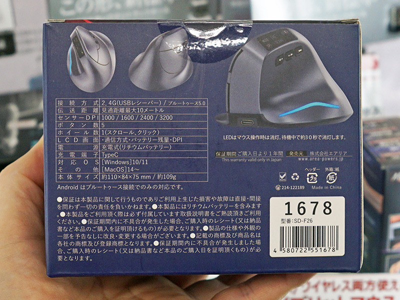 握手の角度を再現した縦型ワイヤレスマウス「ErgoVerMouse/SD-F26」がエアリアから(7/9)