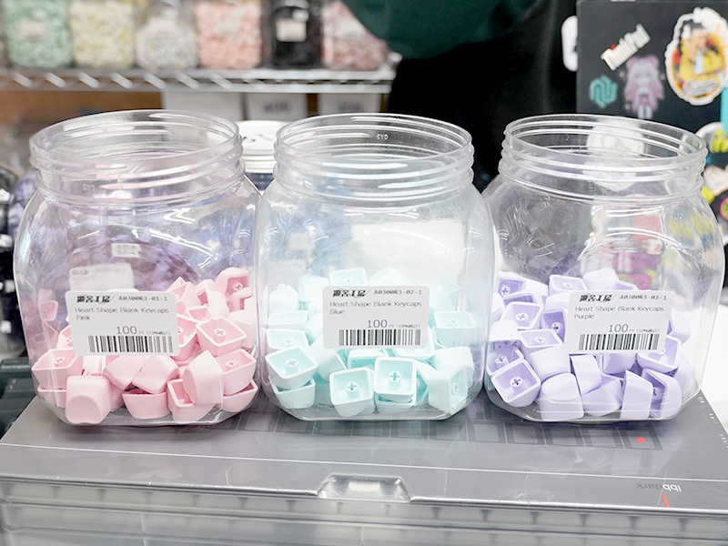 カラフルな無刻印キーキャップが遊舎工房に入荷、ハート型とPC製の2種