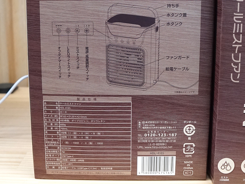 ミスト噴射機能付きの卓上USBファン「HDL-4165」が入荷、価格は3,980円