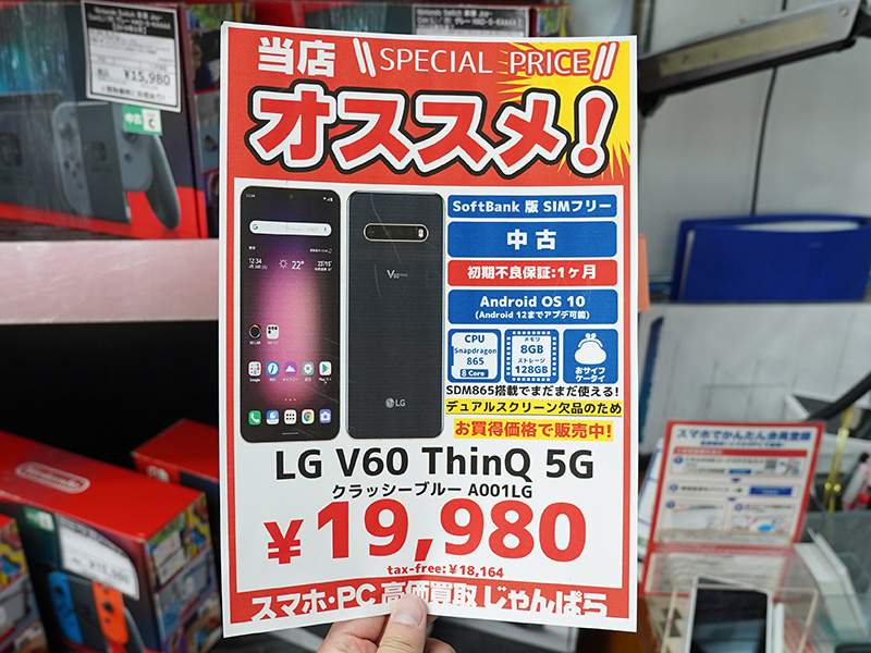 LGの5Gスマホ「LG V60 ThinQ 5G」が19,980円!訳あり中古品セール