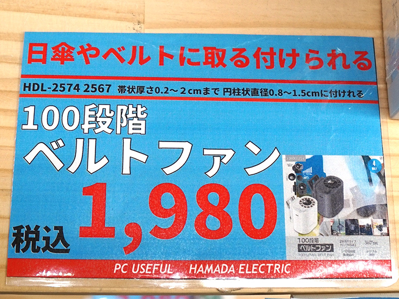 ベルトやパイプに固定できる「100段階ベルトファン」が1,980円