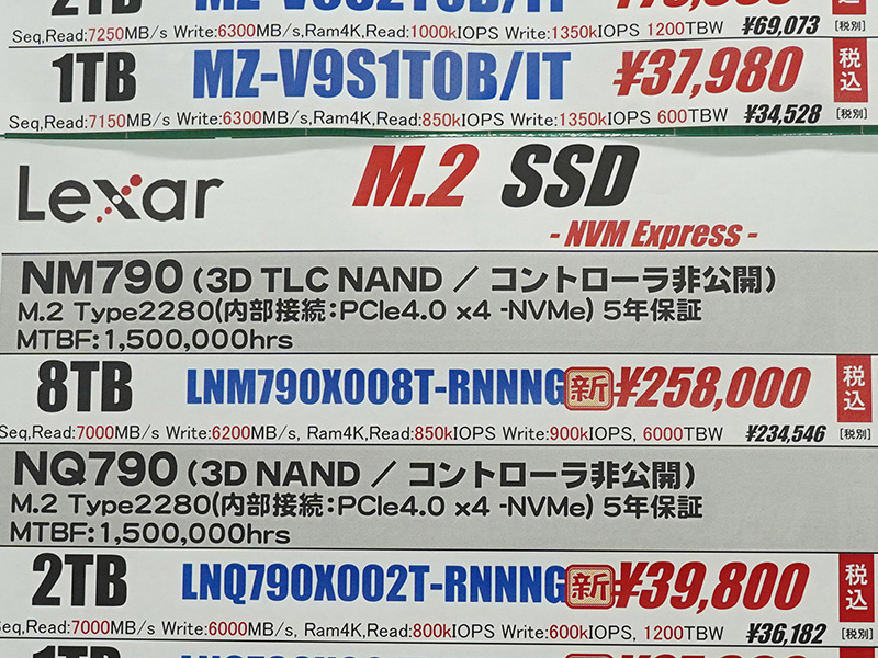 LexarのM.2 SSD「NM790」8TBが入荷、価格は258,000円