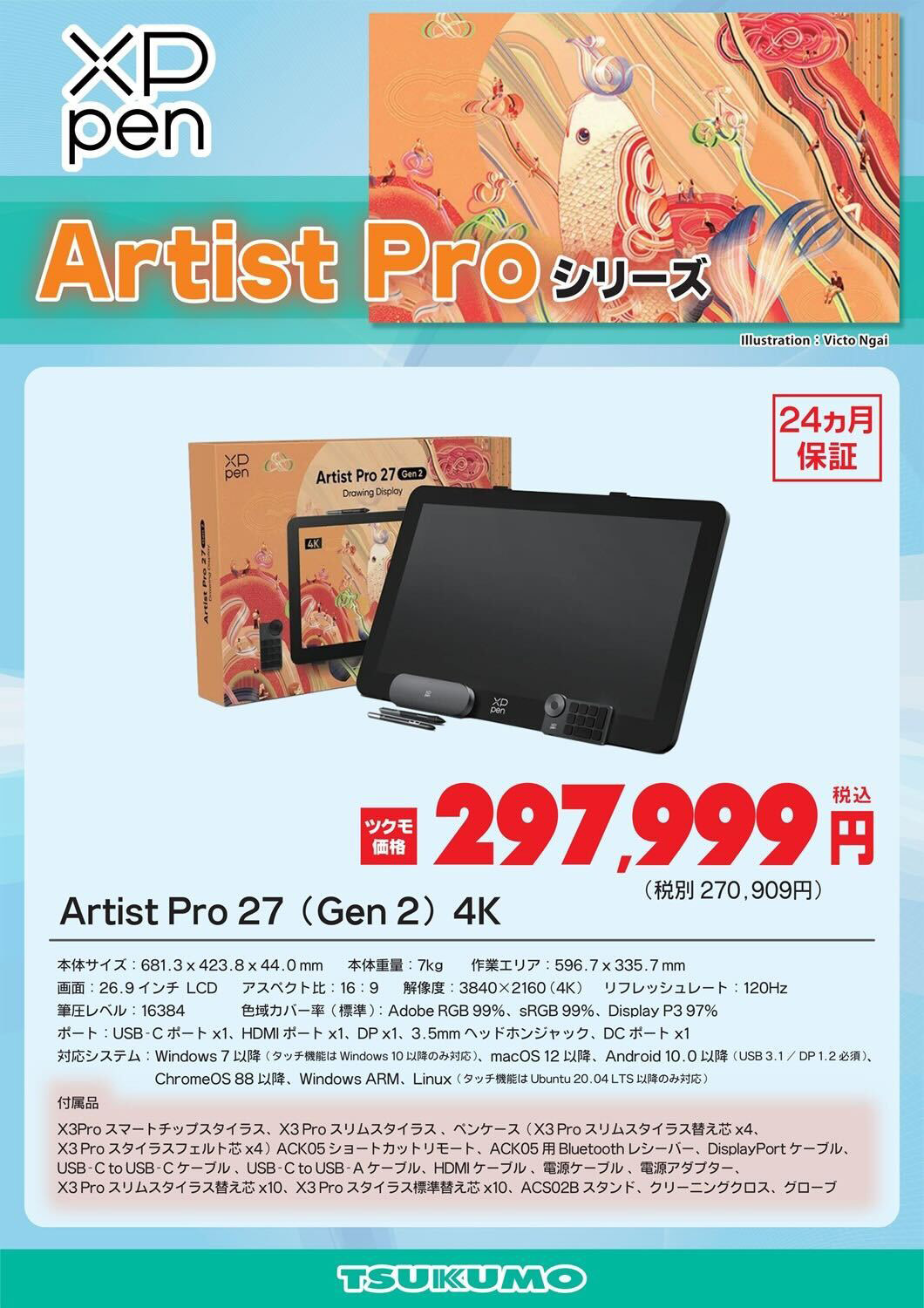 XPPenの4K/26.9インチ大型液晶ペンタブレット「Artist Pro 27 (Gen 2)」が入荷