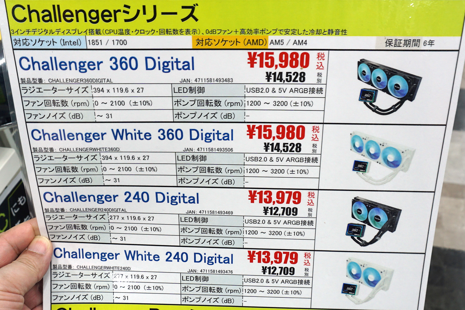 3インチディスプレイを搭載した「Challenger Digital」など、ASRockの簡易水冷クーラーが計9製品(4/12)