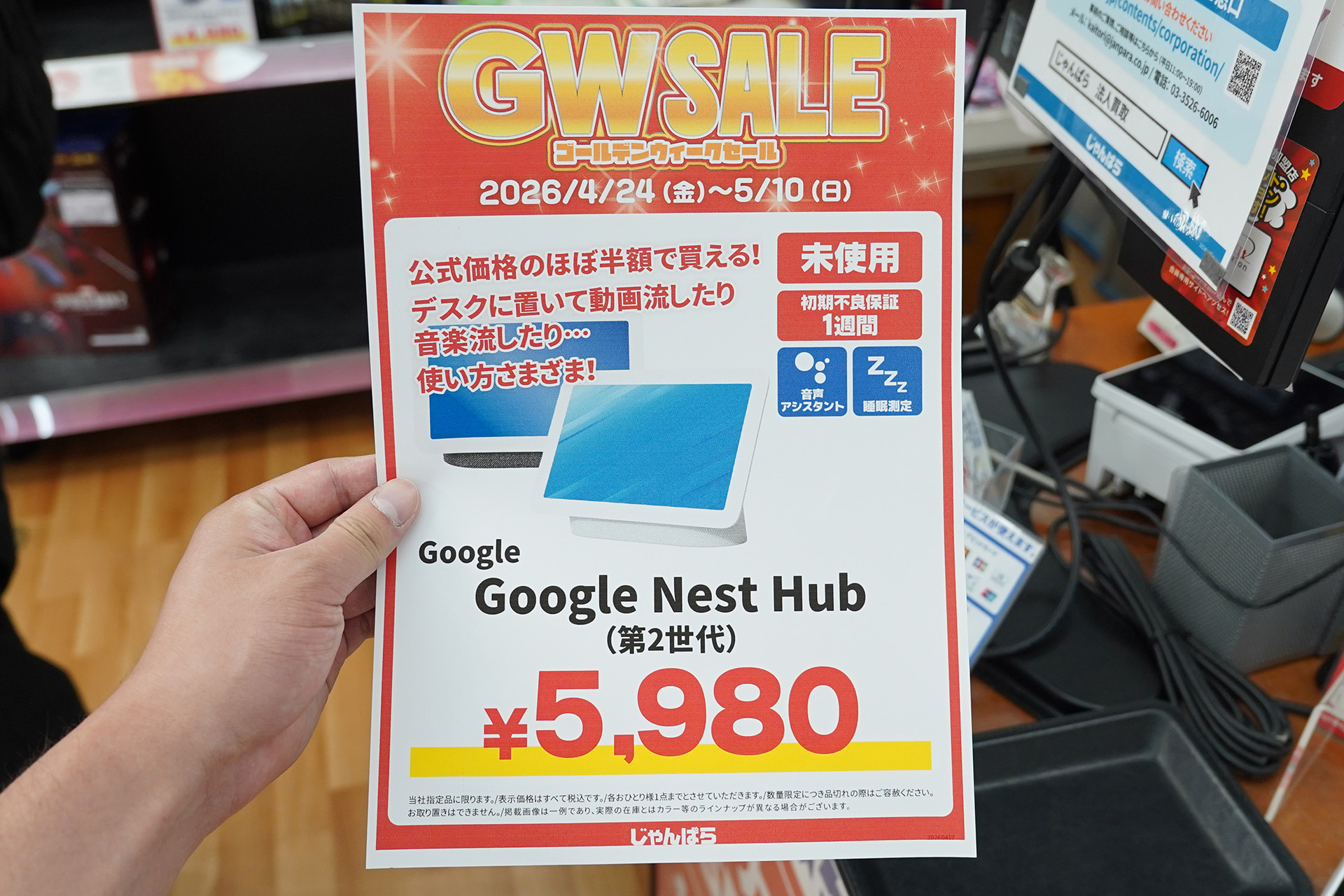 Googleのスマートディスプレイ「Nest Hub(第2世代)」が5,980円、じゃんぱらの未使用品セール
