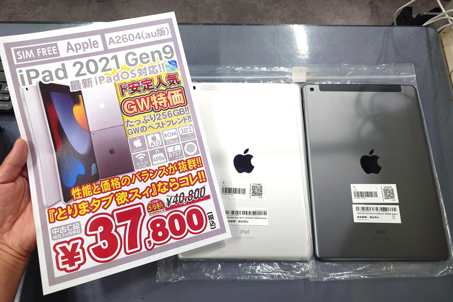 第9世代iPad 256GB Cellularモデルが37,800円!期間限定の中古品セール