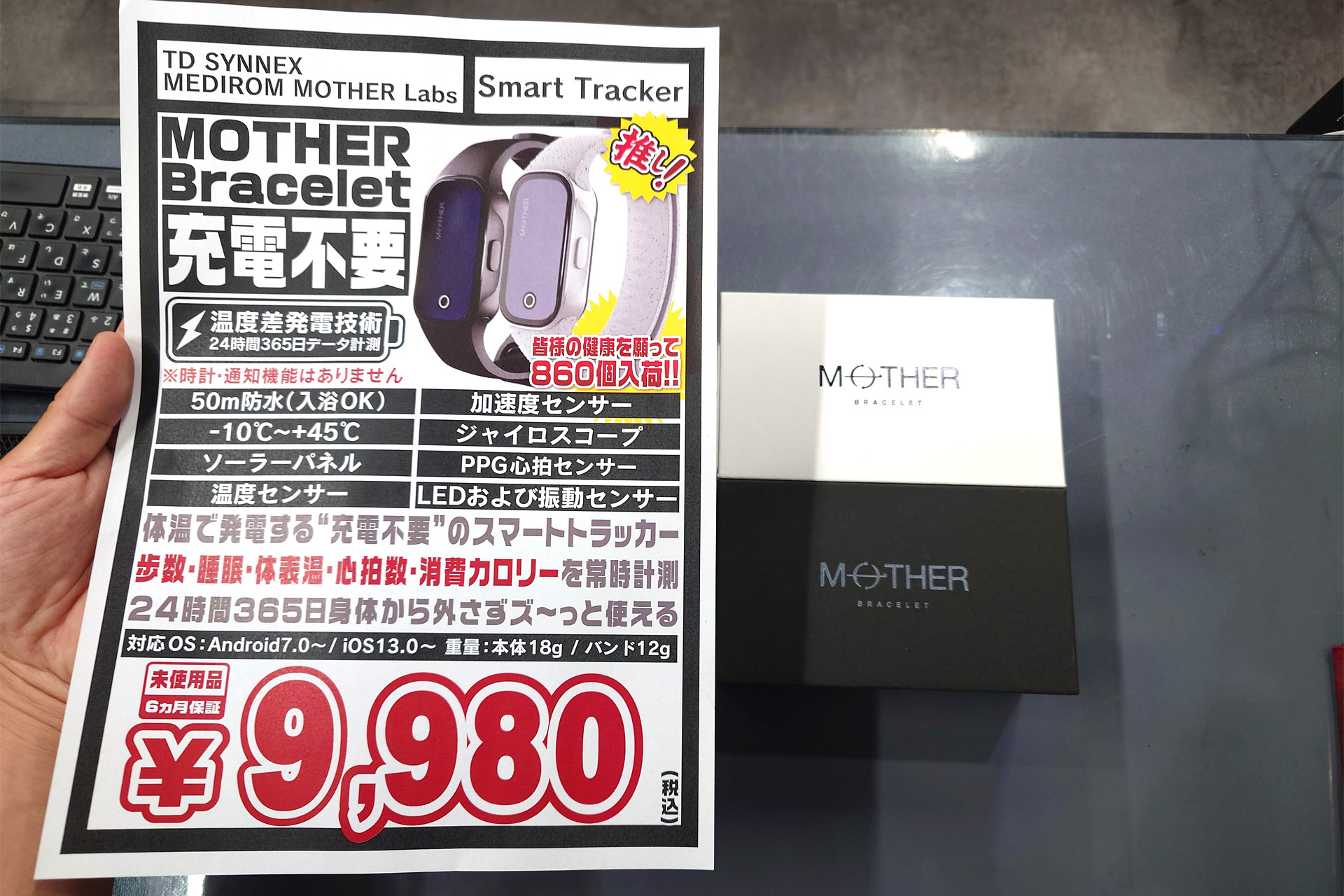 充電不要な活動量計「MOTHER Bracelet」が9,980円!未使用品が大量入荷