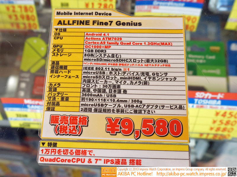 クアッドコアCPU+IPS液晶で1万円割れの格安タブレットが販売中