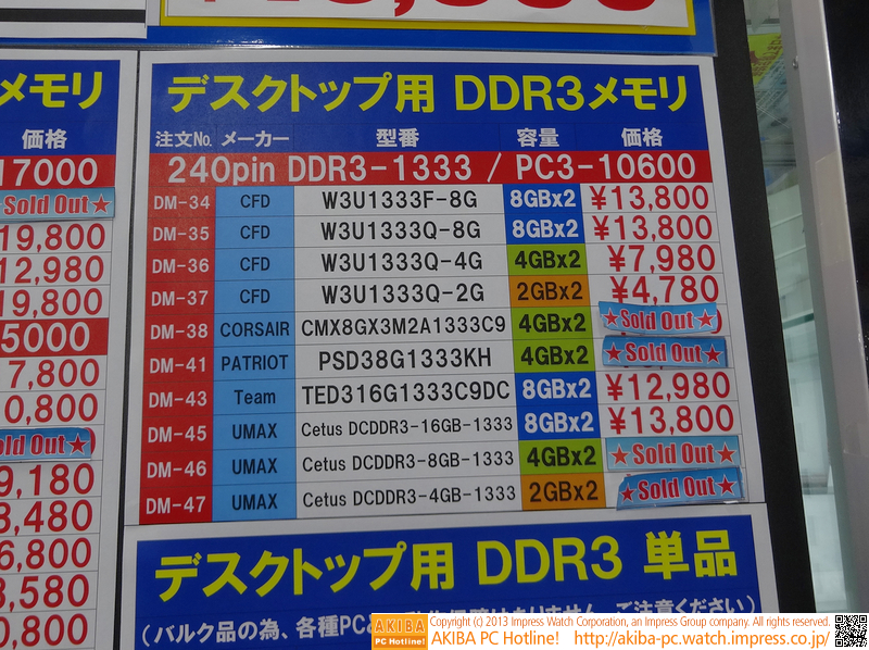 サハロフ佐藤の相場月報 2013年8月号 (メモリ最速更新、DDR3-3100登場)