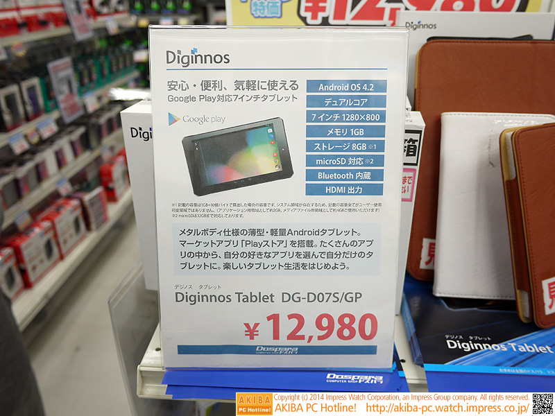 ドスパラからGoogle Play対応の7インチタブレットが登場