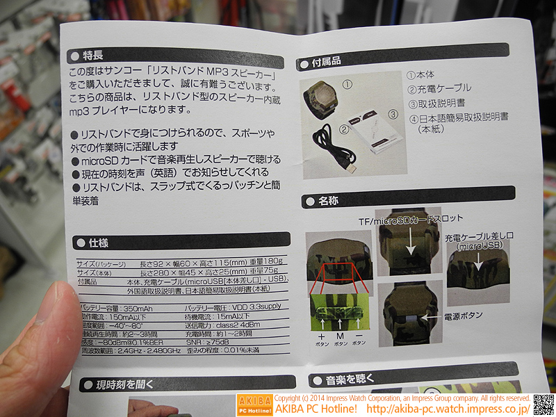 腕時計型で4千円のメディアプレイヤー発売、タッチでも操作可