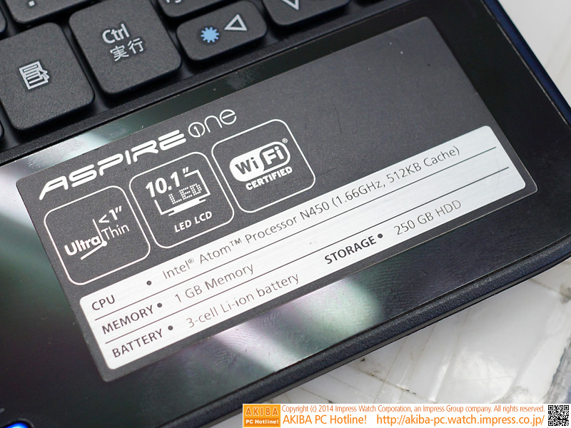 日本エイサー、FOMAハイスピード内蔵の「Aspire one」