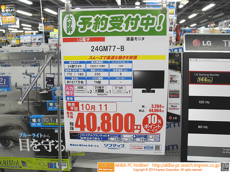 内部240Hz駆動のゲーミング液晶がLGから近日発売、店頭デモ中