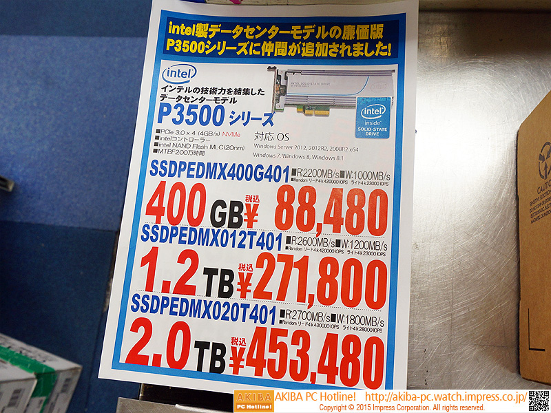 脅威のリード2GB/s超え、Intelの超高速SSD「DC P3700/P3600」が発売