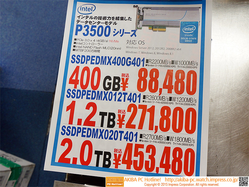 脅威のリード2GB/s超え、Intelの超高速SSD「DC P3700/P3600」が発売