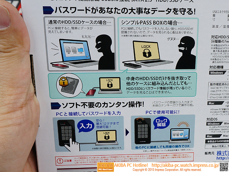 パスワードロック対応のHDDケース「シンプルPASS BOX 2.5」が発売