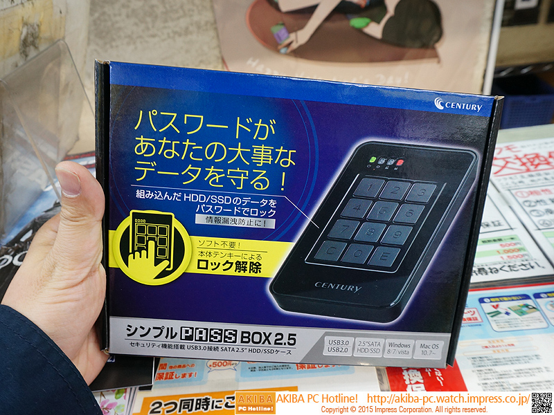 パスワードロック対応のHDDケース「シンプルPASS BOX 2.5」が発売