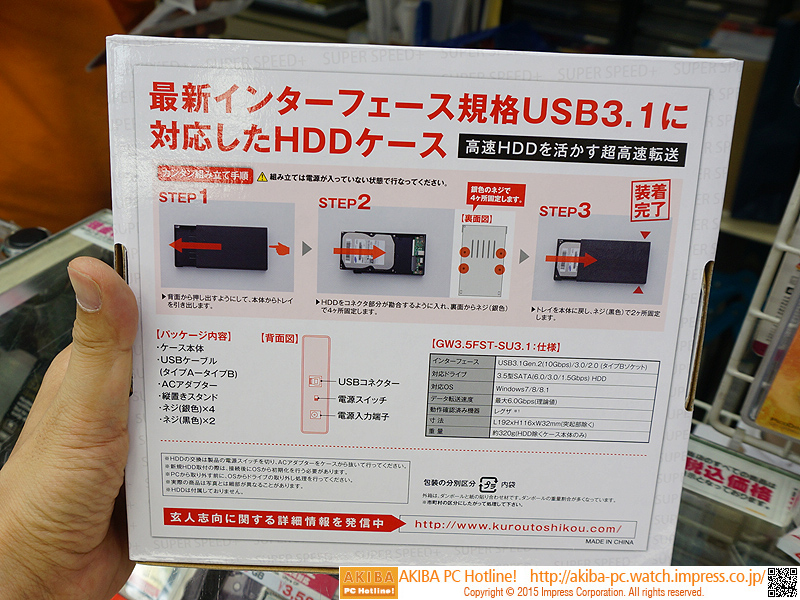 USB 3.1対応の3.5インチHDDケースが玄人志向から登場、実売5,380円(3/5)