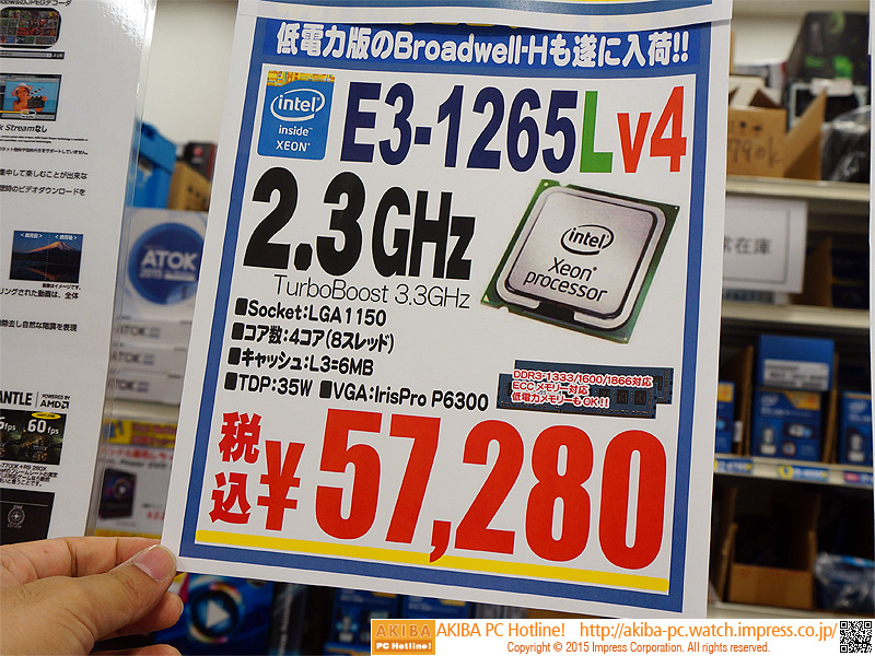 TDP 35WでIris Pro搭載の「Xeon E3-1265Lv4」が登場
