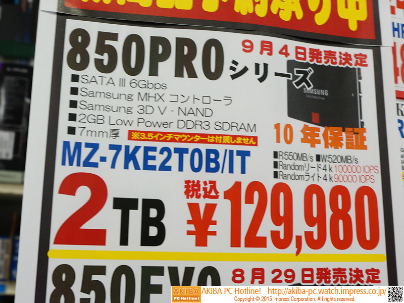 • 容量2TBの一般向けSSDがSAMSUNGから登場、5年保証でSATA接続