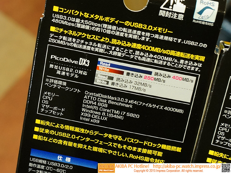 リード400MB/sのUSB 3.0メモリ「PicoDrive DX3」が発売(4/5)