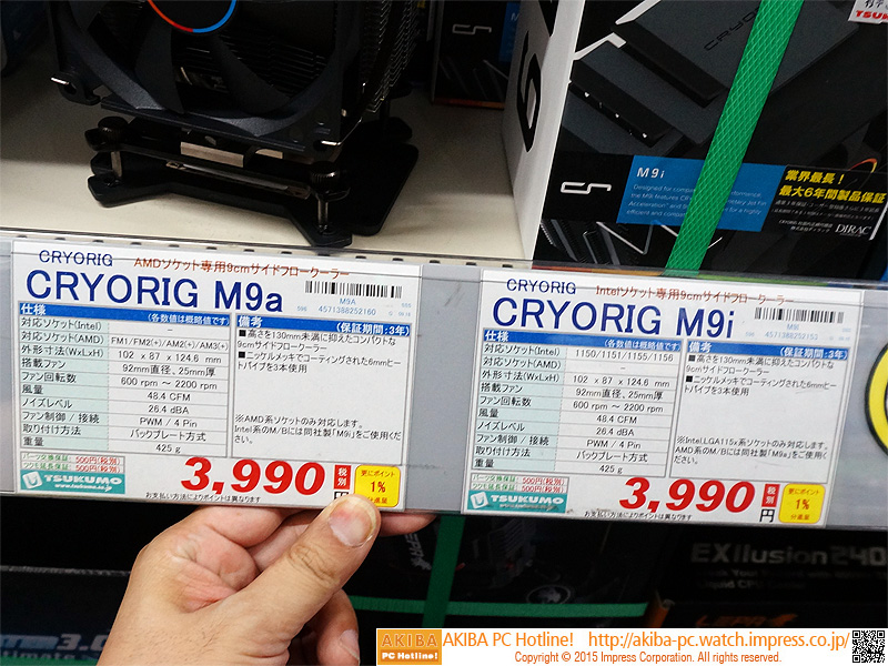サイドフローの小型CPUクーラー「M9」が登場、CRYORIG製