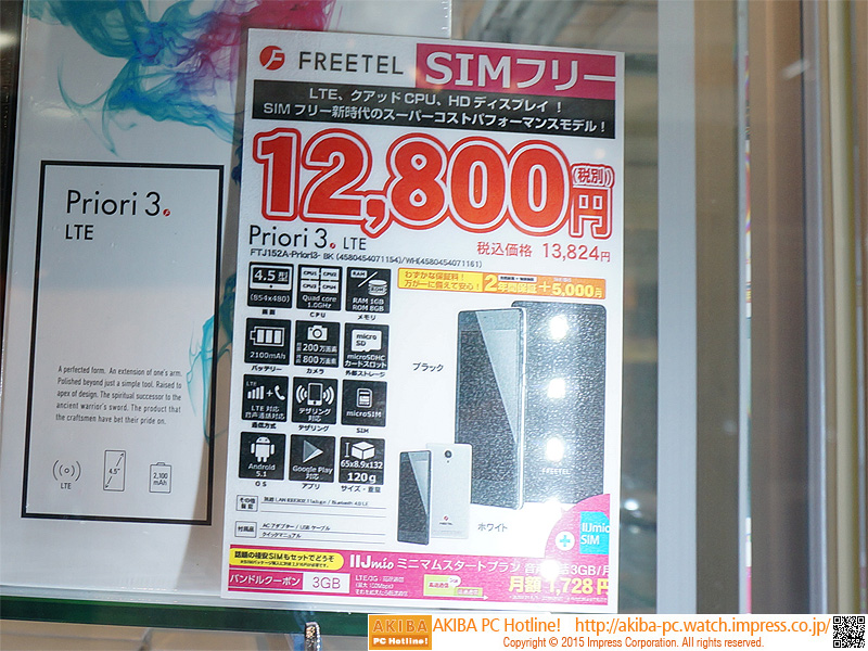 12,800円の国内LTE対応スマホ「Priori 3 LTE」が発売